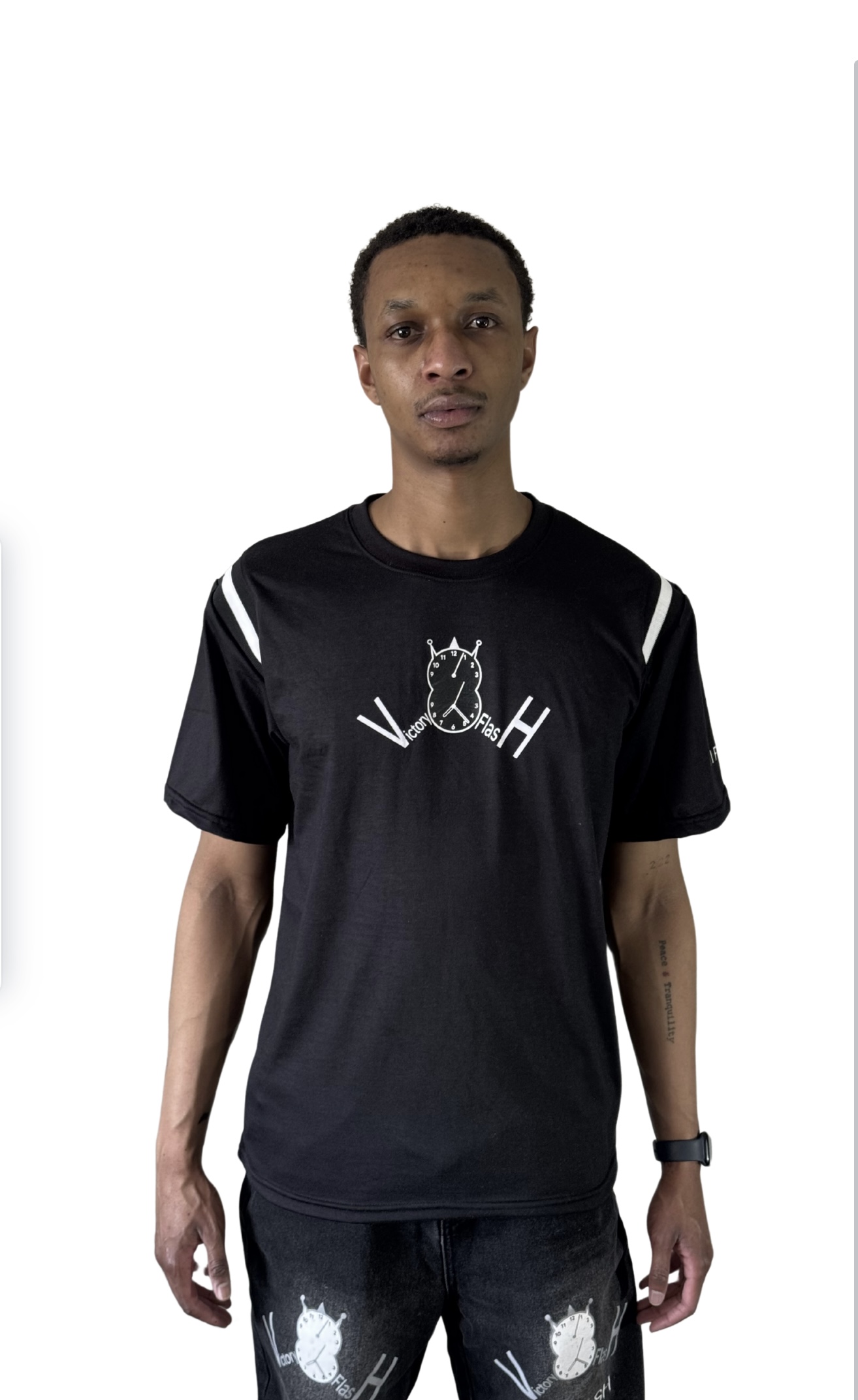 Victory flash clock logo at center chest